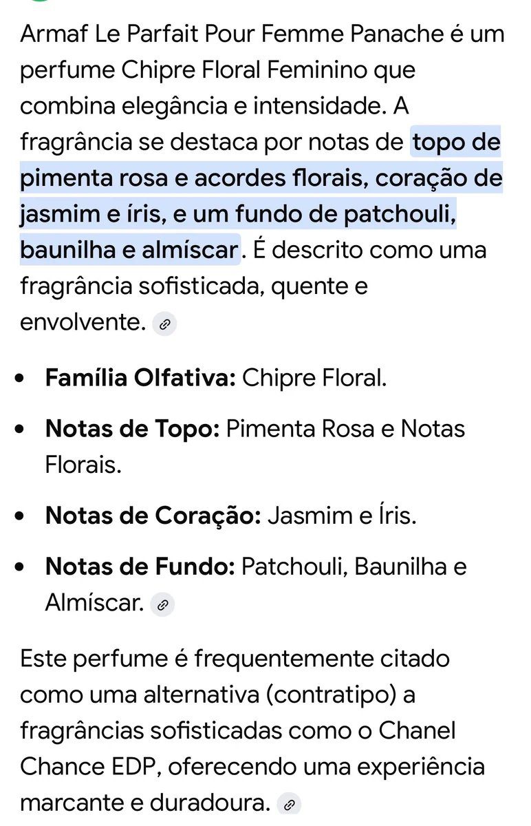 O Armaf Le Parfait Pour Femme é um perfume importado árabe, do tipo Eau de Parfum (EDP), conhecido por sua fragrância floral chipre sofisticada e marcante, com ótima fixação. Lançado em 2016, apresenta notas de jasmim, néroli, mandarina, tuberosa, âmbar e almíscar, oferecendo uma opção refinada e com excelente custo-benefício