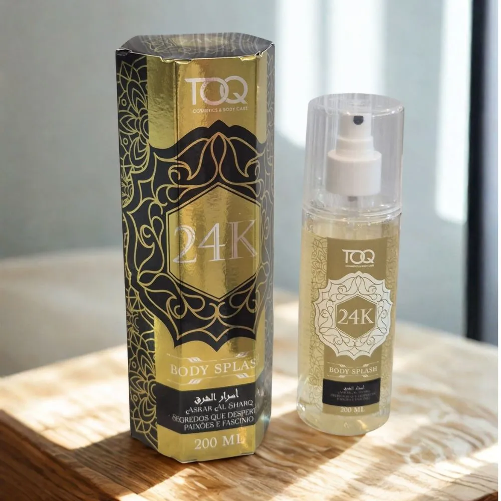 Desenvolvido pela marca TOQ Cosmetics & Body Care, o Body Splash Árabe 24K Asrar Al Sharq oferece uma perfumação leve, sensual e elegante, perfeita para o uso diário, pós-banho ou reaplicações ao longo do dia.