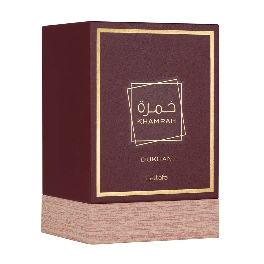 Khamrah Lattafa Eau de Parfum é um perfume árabe masculino com fragrância oriental ousada. Notas de especiarias, incenso e âmbar trazem intensidade e sofisticação. Fixação envolvente e projeção marcante, ideal para noites especiais.