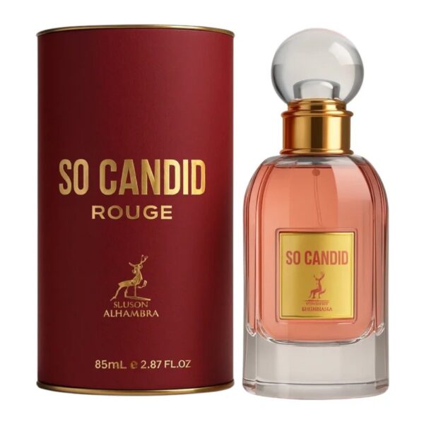 O So Candid Rouge da Maison Alhambra é um perfume feminino EDP de 85ml, aclamado por ser uma fragrância floral frutada, marcante e sofisticada, ideal para quem busca alta fixação e presença. Inspirado na sensualidade, possui notas de framboesa, tuberosa e bergamota, com fundo quente de baunilha, patchouli e almíscar.