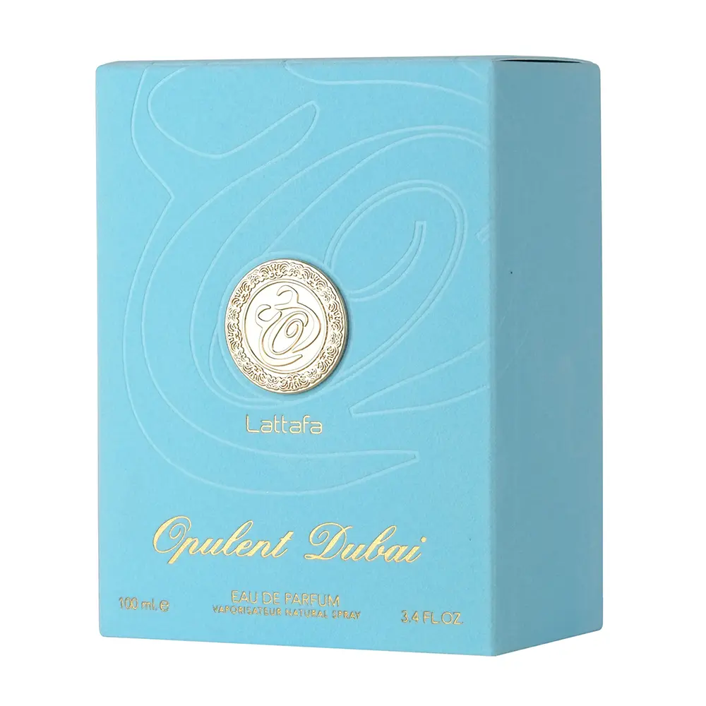 Lattafa Opulent Dubai Eau de Parfum é uma fragrância árabe unissex com abertura de manga, toranja e limão, coração floral de jasmim, violeta e cedro, e fundo amadeirado com âmbar cinzento e benjoim. Elegante, contemporâneo e multifacetado. Fixação duradoura e projeção envolvente.