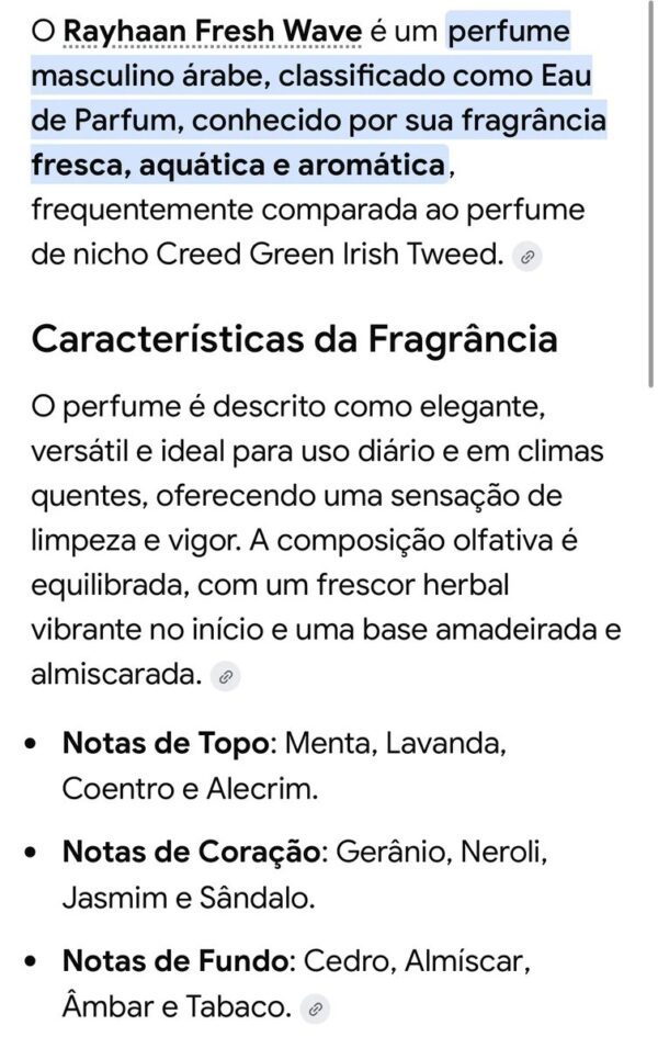 Notas de topo: Hortelã, Lavanda, Coentro e Alecrim