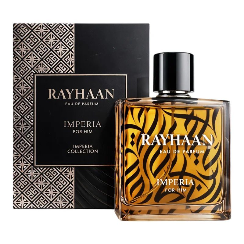 Imperia de Rayhaan é um perfume Amadeirado Aromático Masculino. Imperia foi lançado em 2022. As notas de topo são: Bergamota, Maçã, Hortelã e Elemi. As notas de coração são: Patchouli, Jasmim, Rosa e Sândalo. As notas de fundo são: Cedro, Musgo de Carvalho, Âmbar e Almíscar.